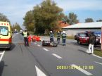 Na vyžádání operačního střediska HZS Nový Jičín jednotka zasahovala u dopravní nehody osobního vozidla a motocyklu na komunikaci I/58 v obci Mošnov. Při nehodě došlo k těžkému zranění 2 osob, kterým bylo poskytnuto předlékařské ošetření a které pak byly předány rychlé lékařské službě. Na místo nehody byl přivolán i vrtulník rychlé lékařské služby. Jednotka zajistila místo nehody, ve spolupráci s Policií ČR řídila dopravu v místě zásahu. Jednotka spolupracovala: HZS MSK Nový Jičín, RLS, RLS-vrtulník, PČR