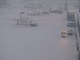 Odklízení nadměrného množství sněhu z letištních budov